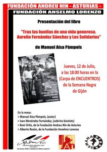 12 de Juliol a les 18 hores presentació del llibre “Tras las Huellas de una vida generosa Aurelio Fernández Sánchez y los Solidarios” dins de la Semana Negra de Gijón, autor Manel Aisa editorial El Lokal de Barcelona 20180703_Programa-provisional-XXXI-Semana-Negra 12 de Juliol a les 18 hores (Carpa principal) presentació del llibre “Tras las Huellas de una vida generosa Aurelio Fernández Sánchez y los Solidarios” de Manel Aisa editorial El Lokal dins de la Semana Negra de Gijón