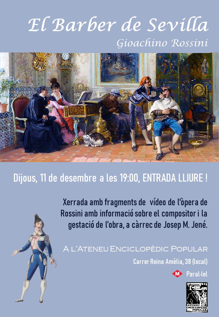 19:00 - 21:00 El barber de Sevilla, òpera a l’Ateneu 11 desembre, 19:00 - 21:00 El barber de Sevilla, òpera a l’Ateneu Escoltar òpera, conèixer l'òpera, els protagonistes i la seva gestació. El Barber de Sevilla